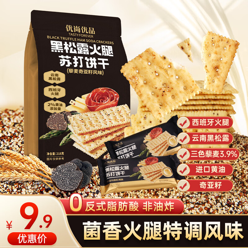 优尚优品黑松露火腿苏打饼干薄脆梳打回礼伴手礼早餐办公室休闲零食218g