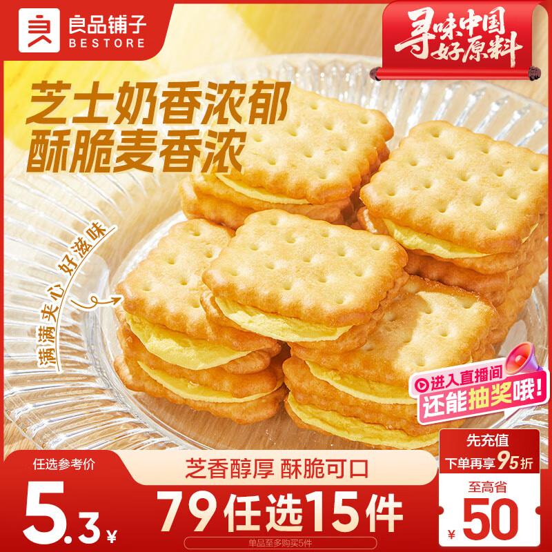 良品铺子 芝士夹心饼干106g休闲零食早餐代餐办公室下午茶充饥饼干糕点