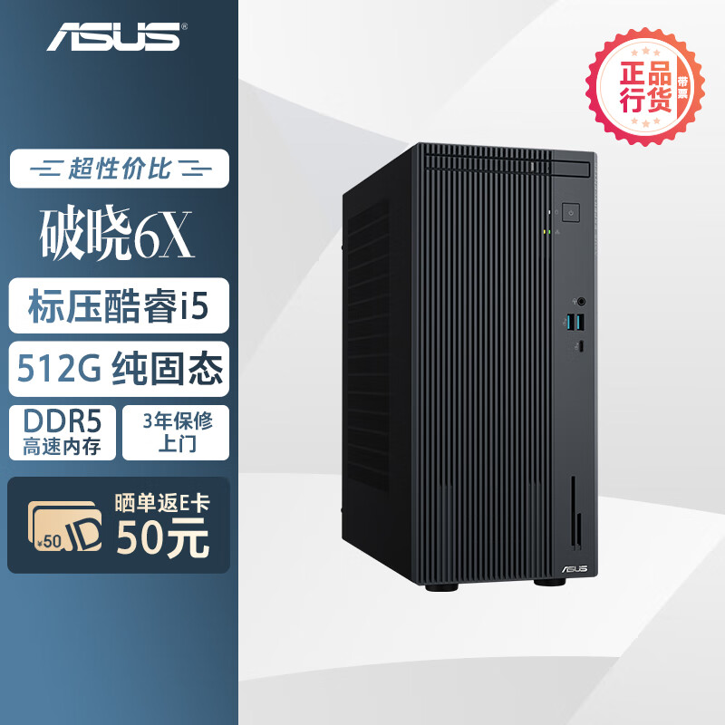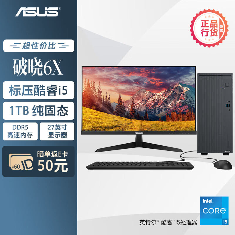 华硕破晓6X 台式机台式电脑整机(酷睿i5-13420H 16G DDR5 1TSSD Win11)27英寸显示器