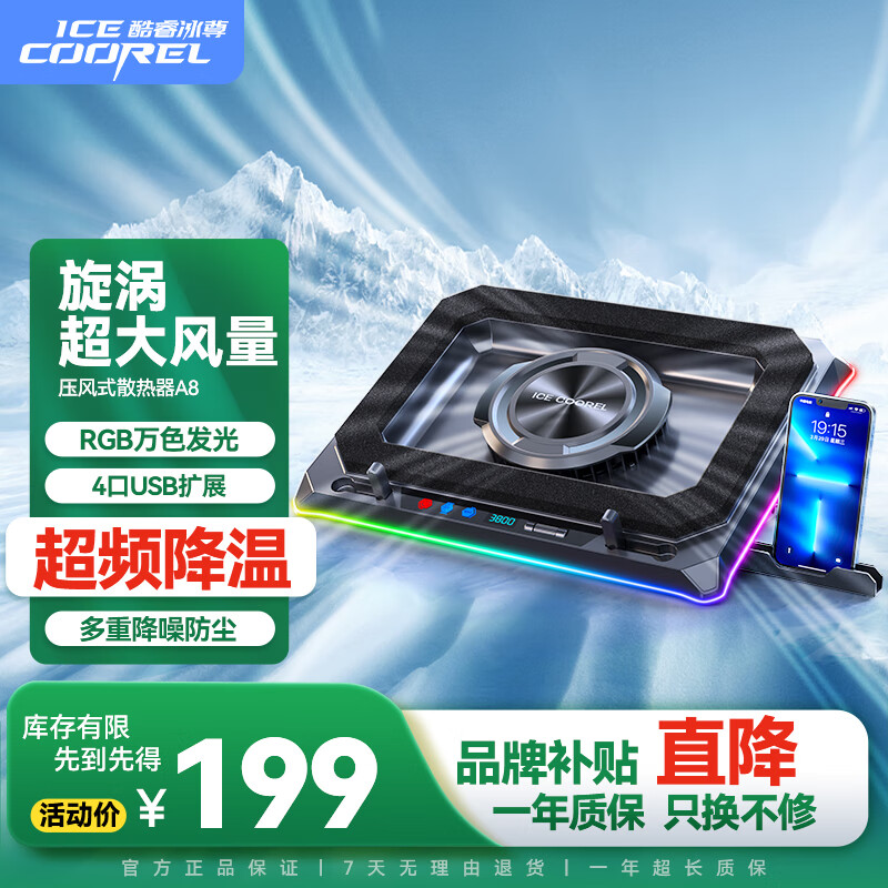 酷睿冰尊(ICE COOREL)笔记本压风式散热器A8 笔记本支架游戏本降温底座可调速散热适用联想戴尔外星人拯救者华硕霆硕RGB
