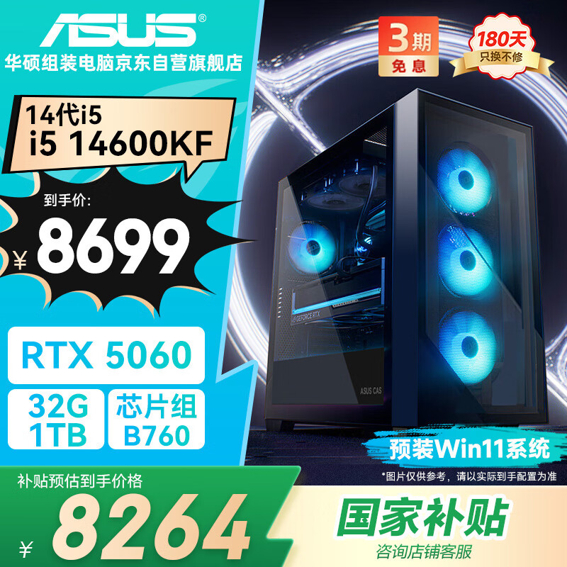 华硕全家桶追影i5 14600KF/RTX5060显卡/32G/1T游戏全家桶电竞台式整机设计师组装电脑主机