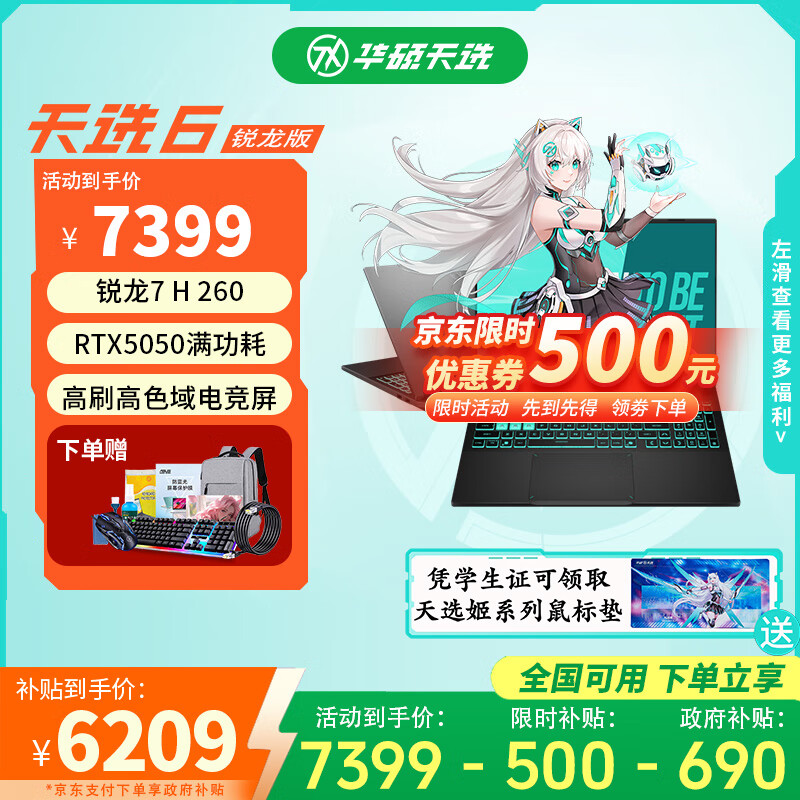 华硕天选6 Pro 酷睿版 2025游戏本 补贴20% 高性能酷睿HX 16英寸RTX50显卡学生游戏电竞笔记本电脑 i7-14650HX|RTX5060 2.5K 青 16G+1T|官方标配