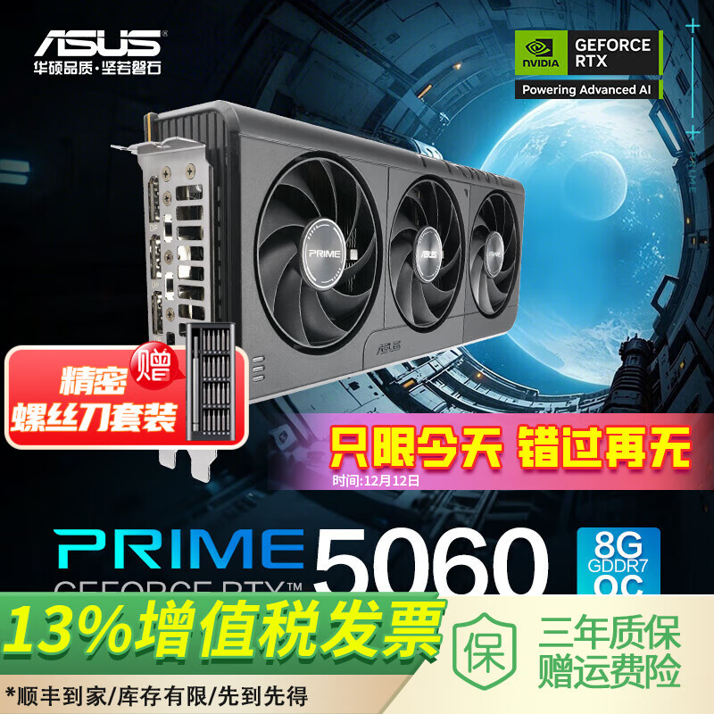 华硕(ASUS)TUF/TX/PRIME/DUAL GeForce RTX 5060 O8G GAMING 电竞游戏显卡 PRIME-RTX5060-O8G大师