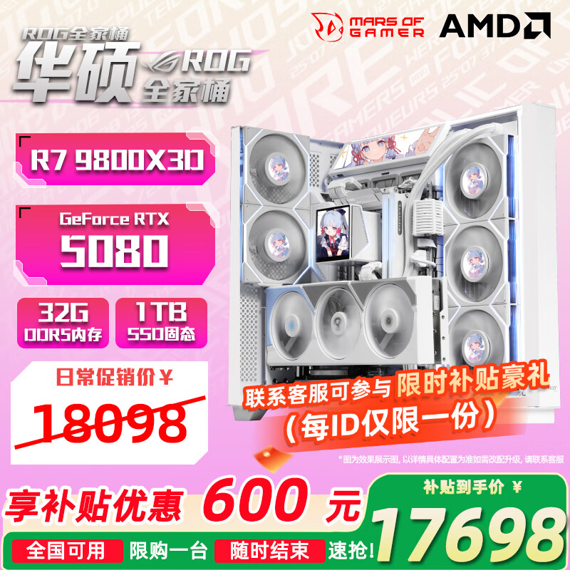 华硕 9800x3d主机 5070ti主机5080 华硕rog全家桶 9800x3d5070主机 DIY游戏台式组装电脑补贴整机 9800x3d主机+RTX5080丨六