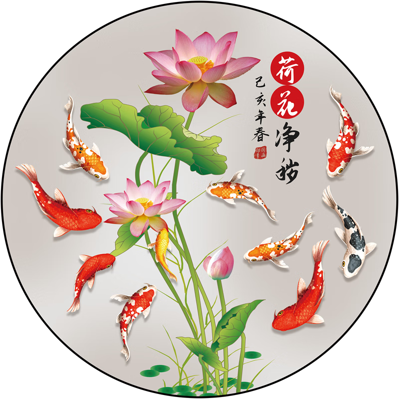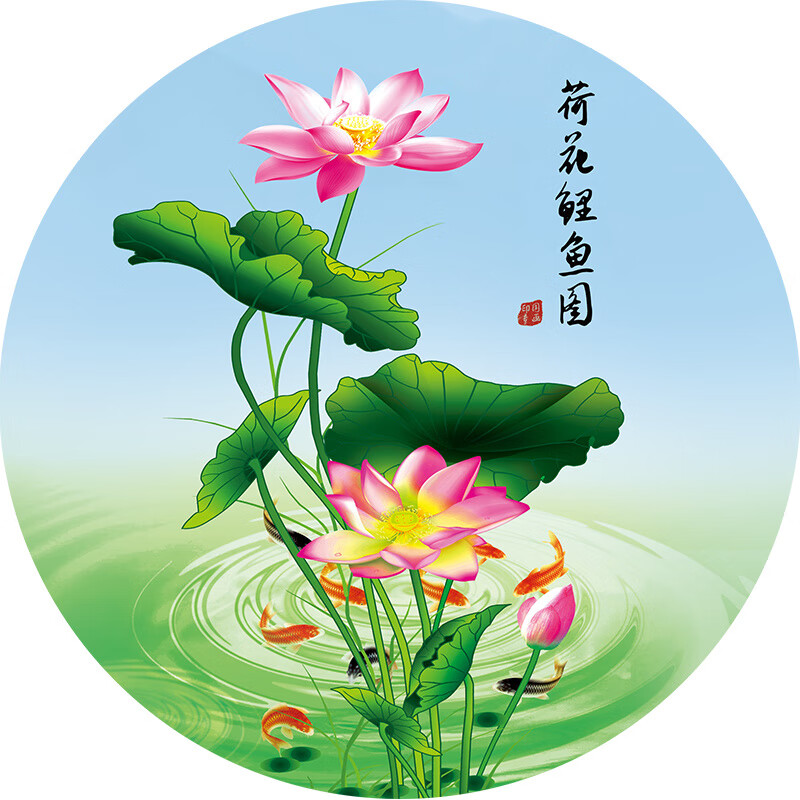 荷花鲤鱼图厨房用小卫生间玄关装饰画粘贴画九鱼聚财图挂画自粘画 荷花净秽01 圆直径20厘米[太小]