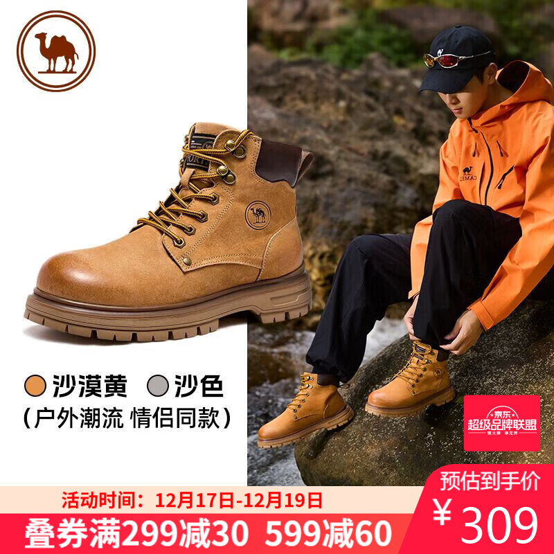 骆驼牌 经典登山户外大黄靴男马丁靴户外工装鞋 P15W379009 沙漠黄 42