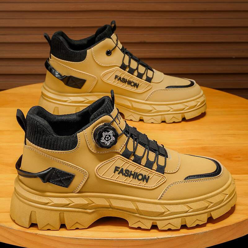 【高档轻奢】2026春季新款男士潮鞋马丁靴 厚底工装百搭休闲鞋 黄色 39