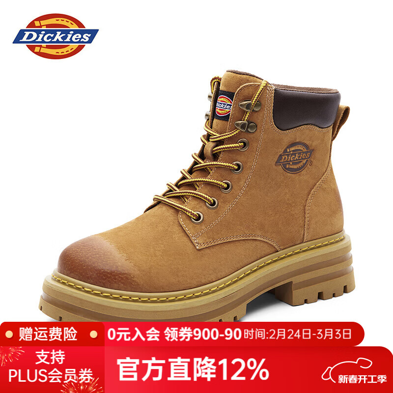 Dickies马丁靴男靴2026冬季百搭靴子男女情侣大黄靴加绒厚底增高鞋工装靴 57土黄 37 【偏大一码,适合运动鞋38】