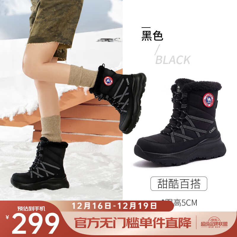 骆驼(CAMEL)女鞋2025冬季新款时尚雪地靴懒人毛毛鞋百搭加绒保暖防寒休闲靴 L25W577050 黑色 37
