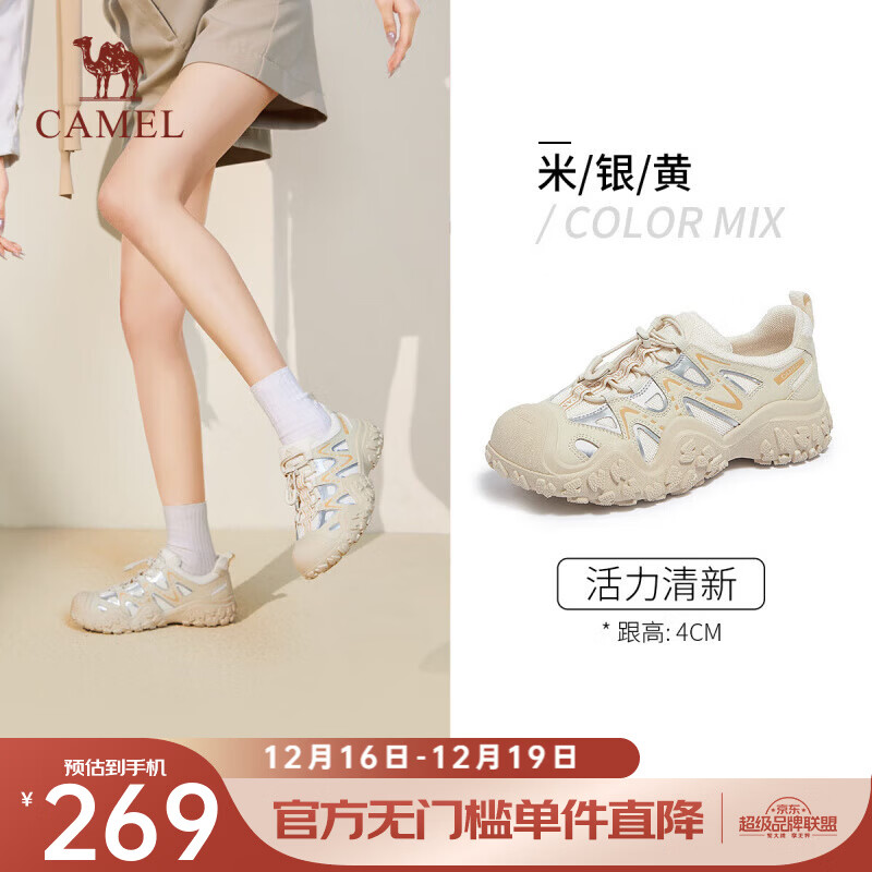 骆驼(CAMEL)登山鞋女丑萌鞋户外徒步女鞋运动鞋时尚百搭潮流休闲鞋 L24S076620米/银/黄 38