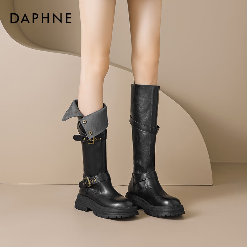 达芙妮长筒靴子女鞋加绒2025新款秋冬爆款牛仔靴高筒巨好看骑士长靴