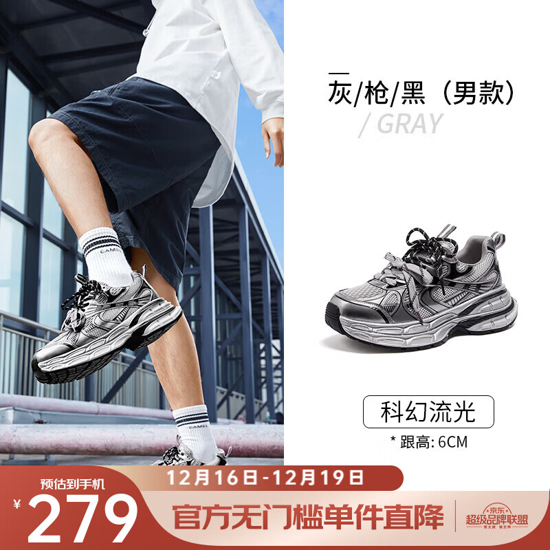 骆驼(CAMEL)【迪丽热巴同款】银月复古老爹鞋增高男女鞋运动休闲鞋情侣同款 L24A283742AM 男款 灰/枪/黑 41