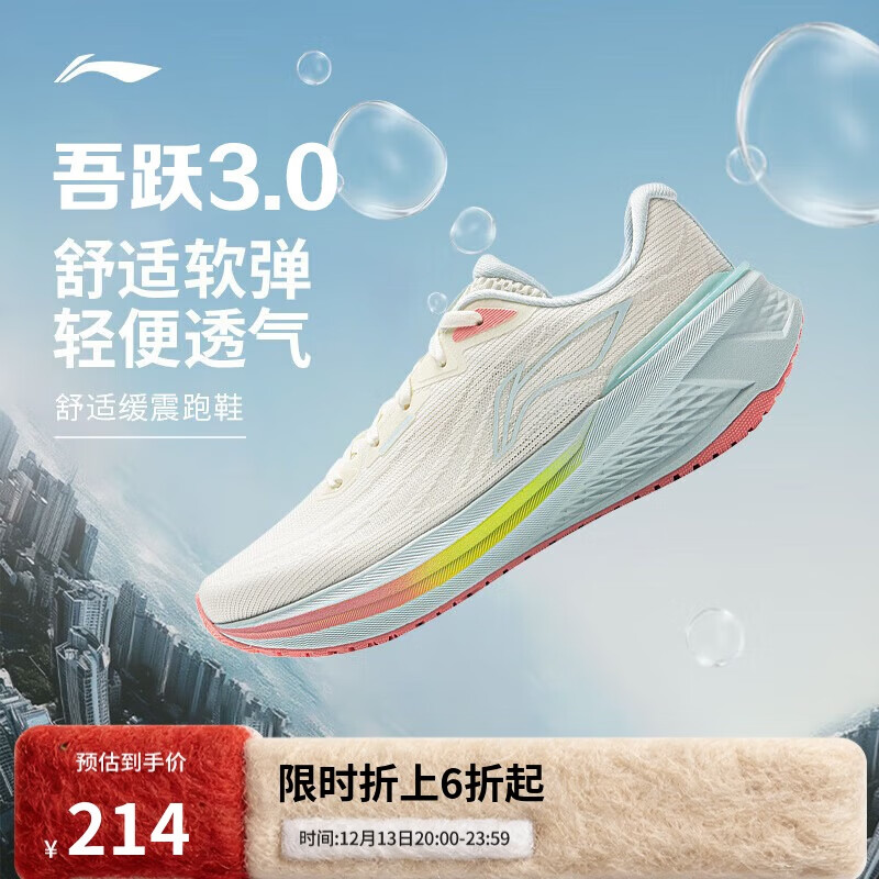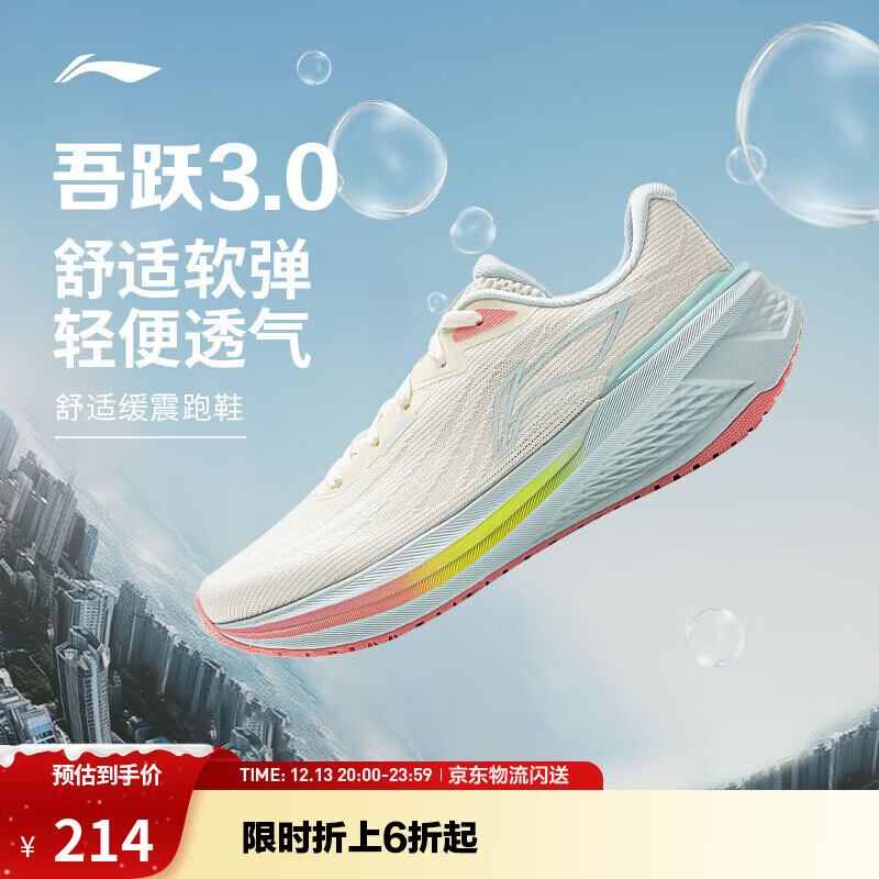 李宁吾跃3.0|减震跑步鞋女鞋25新款轻便透气网面软底体测跳绳运动鞋 【透气贾卡】米白色-7 吾跃3.0 38