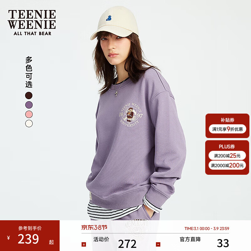 Teenie Weenie小熊女装卫衣秋冬简约宽松休闲学院风圆领套头上衣 紫色 S