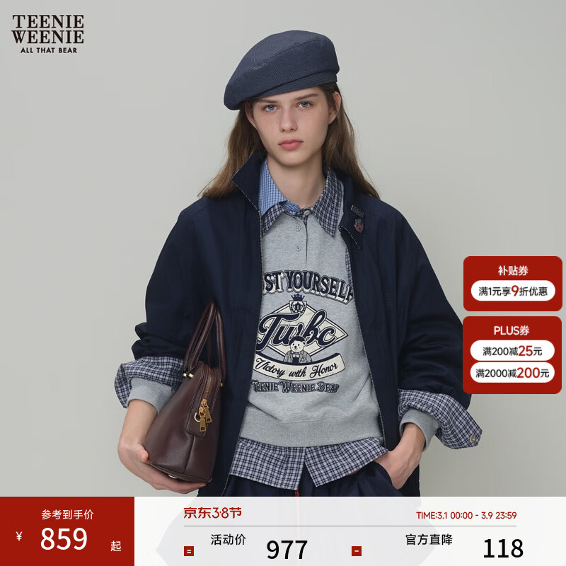 Teenie Weenie小熊女装外套2026年春季新款宽松舒适时髦两面穿翻领潮流夹克上衣 藏青色 M