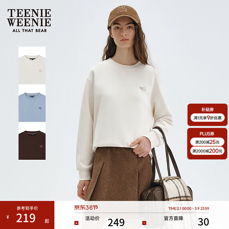 Teenie Weenie小熊女装卫衣春装宽松日常休闲基础圆领长袖内搭上衣 象牙白 S