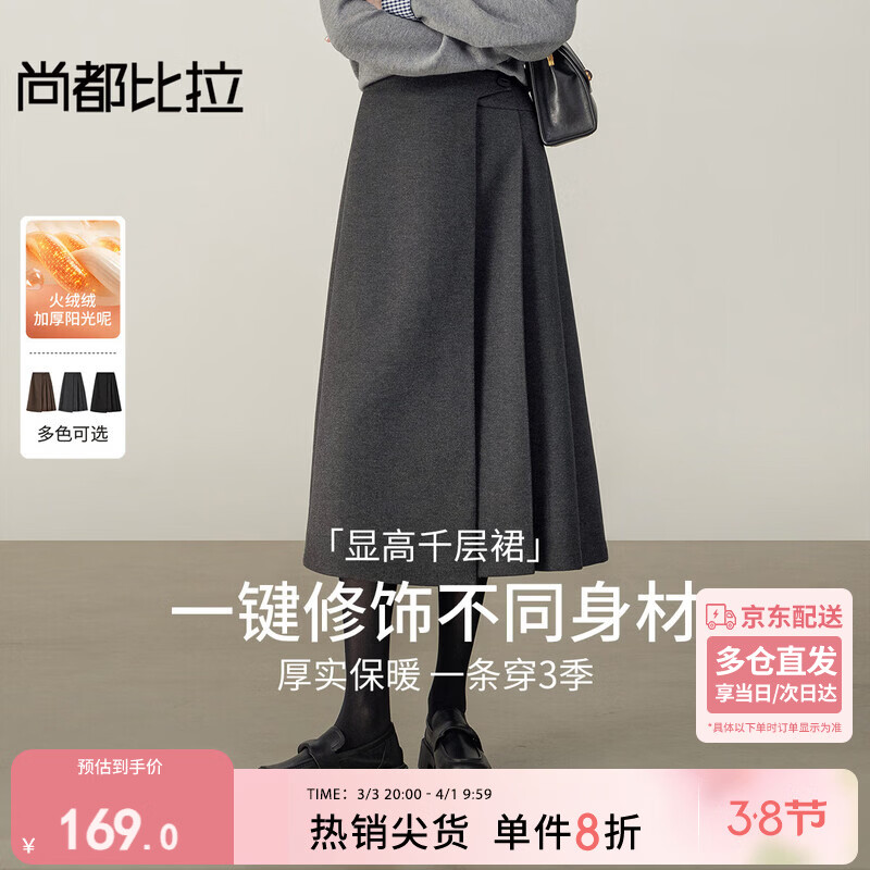 尚都比拉含绵羊毛半身裙女春季女装小个子优雅A字裙百搭气质珠花短裙子
