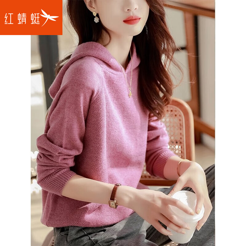 红蜻蜓 卫衣女2026年春季秋季新款毛衣女长袖连帽t恤打底女装针织衫线衣 粉色 均码