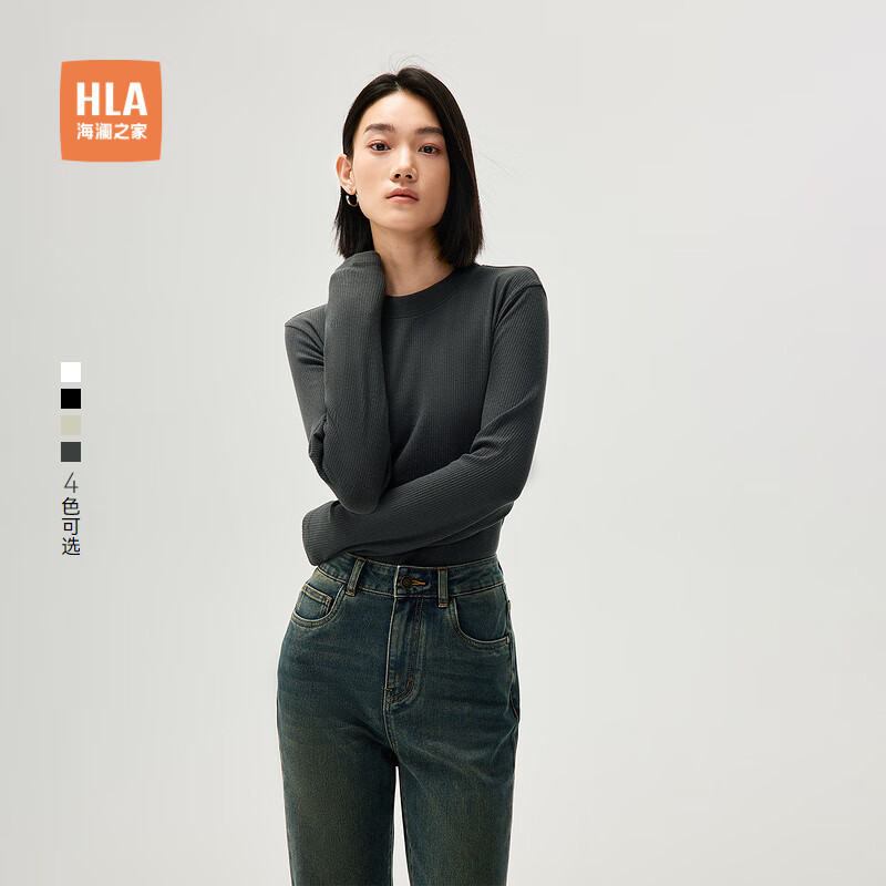 HLA海澜之家长袖T恤女装春秋简约纯色圆领打底衫女