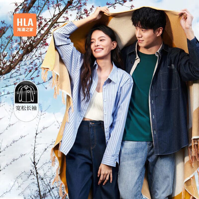 HLA海澜之家长袖时尚衬衫女装春季竖条纹宽松休闲衬衣女