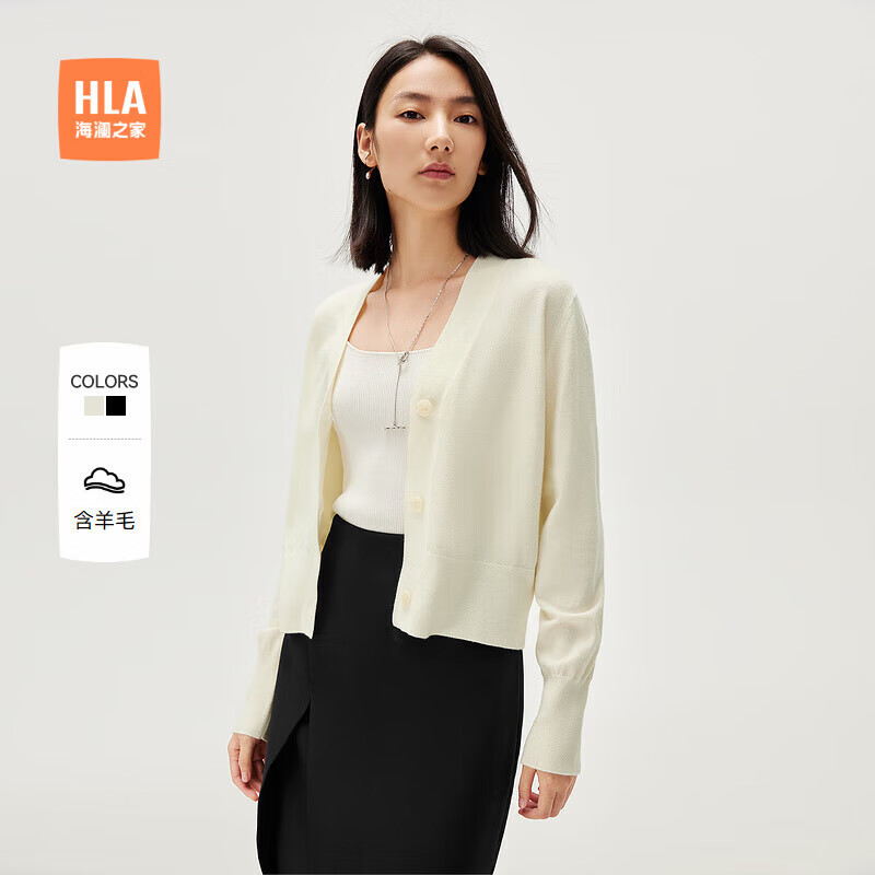 HLA海澜之家针织开衫女时尚V领纯色保暖长袖女装春秋
