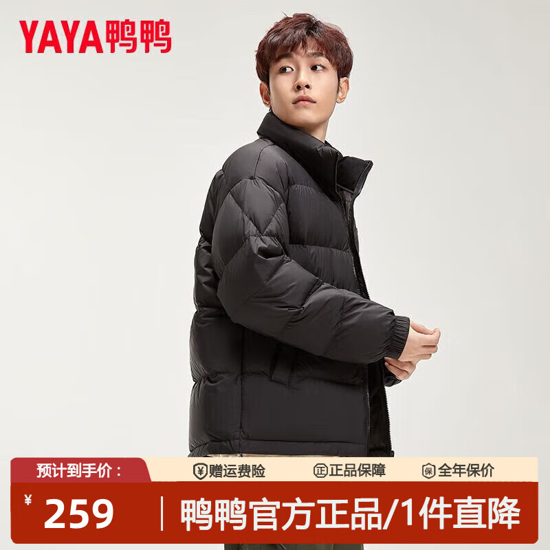 鸭鸭(YAYA)2025秋冬新款简约休闲短款时尚百搭保暖面包羽绒服立领外女装套潮 青光黑色 M