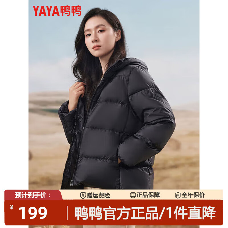 鸭鸭(YAYA)品牌羽绒服2025冬季短款面包宽松连帽时尚休闲保暖小个子女装外套 炭黑色 M 【105-120斤】