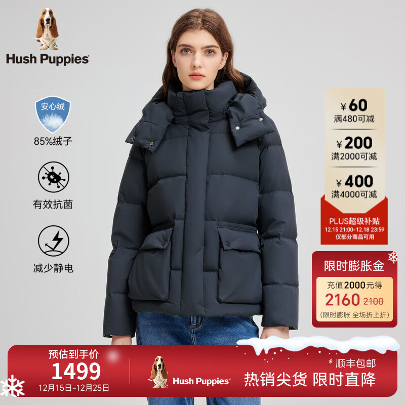 暇步士(Hush Puppies)【舒适温暖】女装2025冬季新款蓬松舒适温暖安心绒羽绒服 玄青蓝 XL