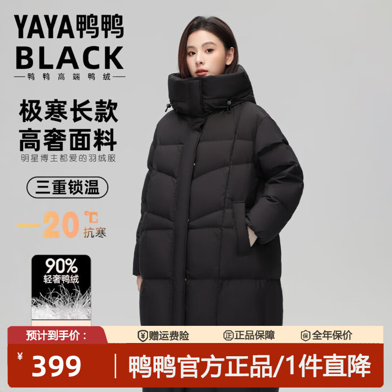 鸭鸭(YAYA)鸭鸭2025新品羽绒服男女同款长款过膝加厚保暖休闲百搭女装外套女 黑色 M 100-130斤