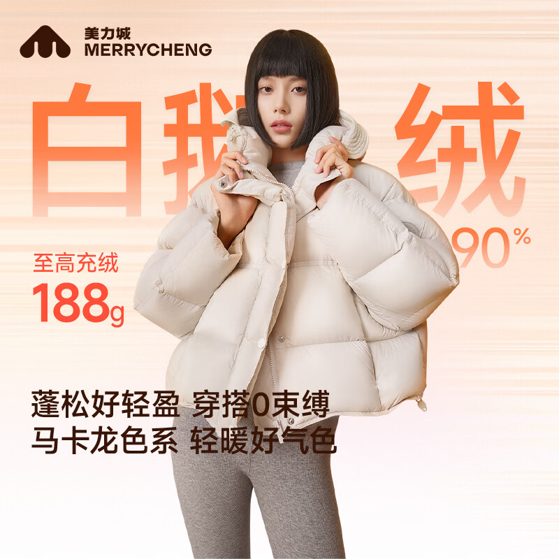 美力城暖天鹅羽绒服女装短款极地鹅绒百搭保暖外套108 钛金白 M