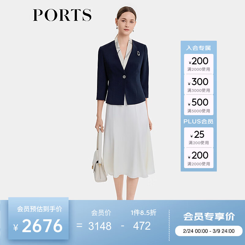PORTS宝姿女装2026春季新款印花领装饰西装短夹克ALU8J009LWP096 丈青色 XL (10)