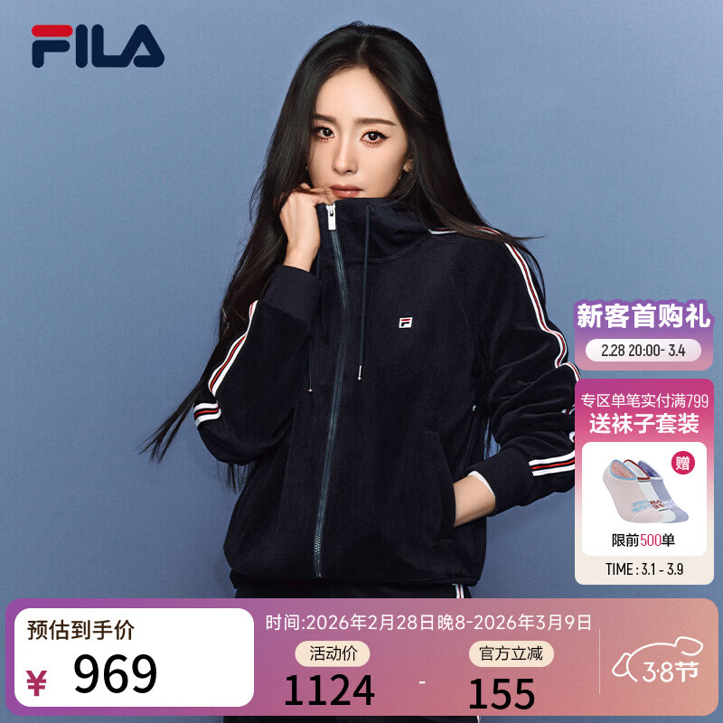 FILA 杨幂同款|斐乐官方女装针织连帽外套2026春新款时尚休闲舒适上衣 传奇蓝-NV L 170/88A/L