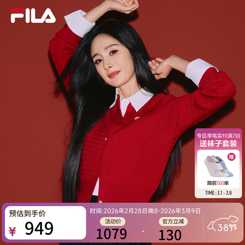 斐乐(FILA) 杨幂同款马上起飞腮红毛衣|女装2026新年款编织麻花开衫春晚同款 节奏红-PK M 165/84A/M