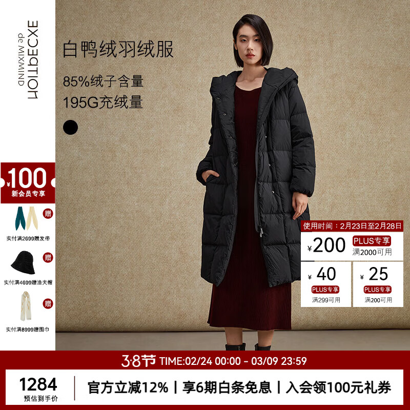 例外(EXCEPTION)轻奢国潮女装秋冬款黑鸭绒保暖连帽中长款羽绒服大衣潮流设计 黑色 M