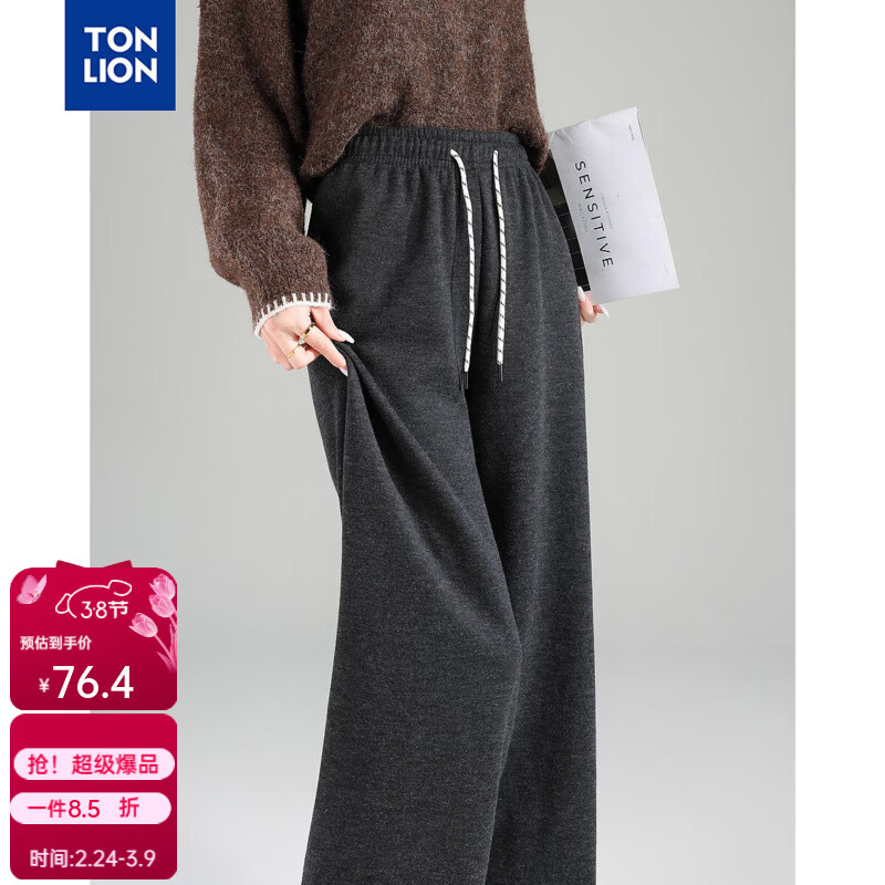 唐狮(TonLion)2025秋冬新款女装直筒休闲长裤加绒加厚宽松显瘦潮流女运动卫裤 深灰 M