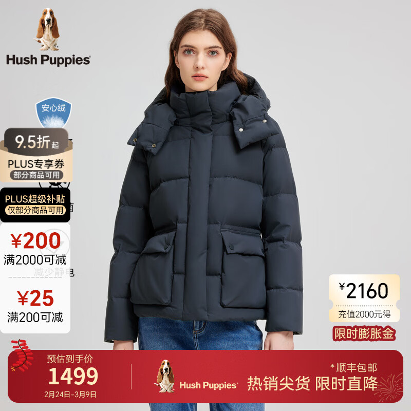 暇步士(Hush Puppies)【舒适温暖】女装冬季新款蓬松舒适温暖安心绒羽绒服 玄青蓝 L