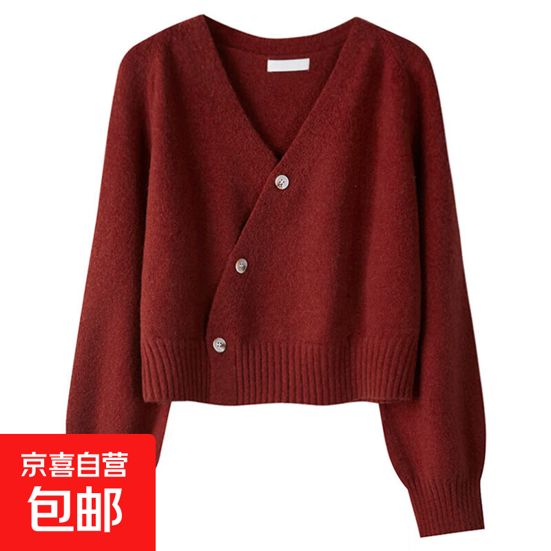 春秋季2025年新款女装小个子女士毛衣针织开衫短外套上衣设计感 1192酒红色 M 【建议90斤-110斤】