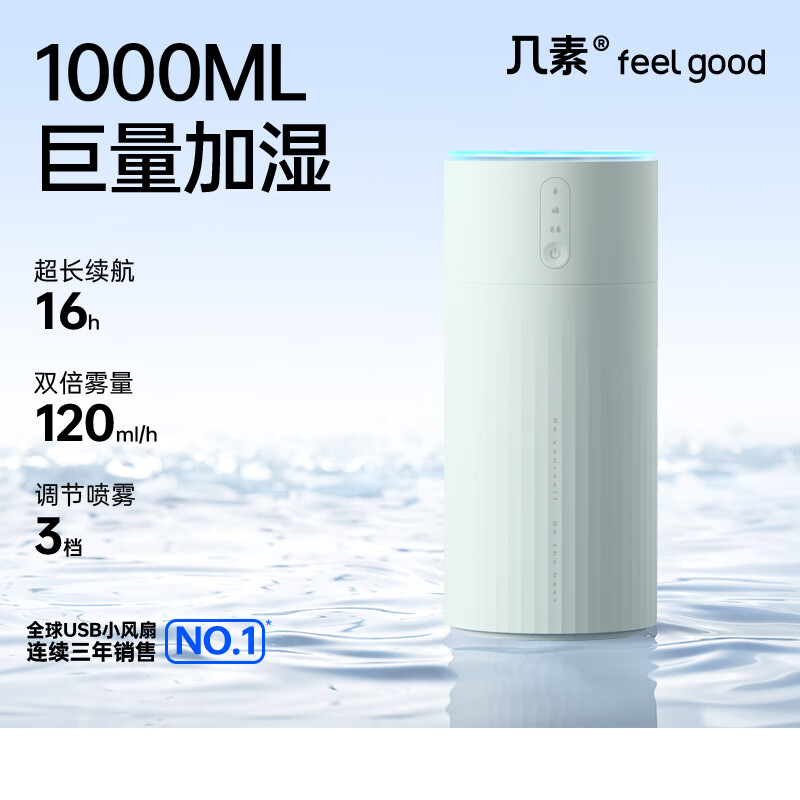 几素 加湿器迷你卧室婴儿家用宿舍便携小型无线空气低噪床头小巧补水办公室桌面usb车载香薰大容量加湿 【1100毫安】无线使用+大雾量+2根滤芯