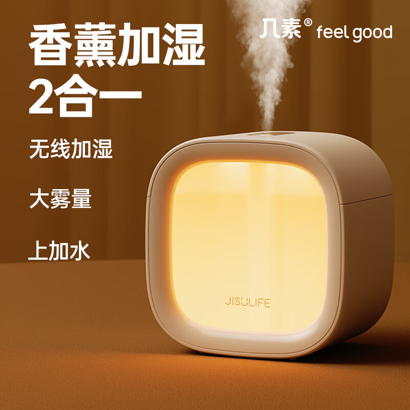 几素加湿器桌面小型办公桌卧室宿舍迷你便携无线空气婴儿床头办公室充电车载礼品生日礼物女香薰机加湿 白色【温馨夜灯+可加香薰+防干烧保护】