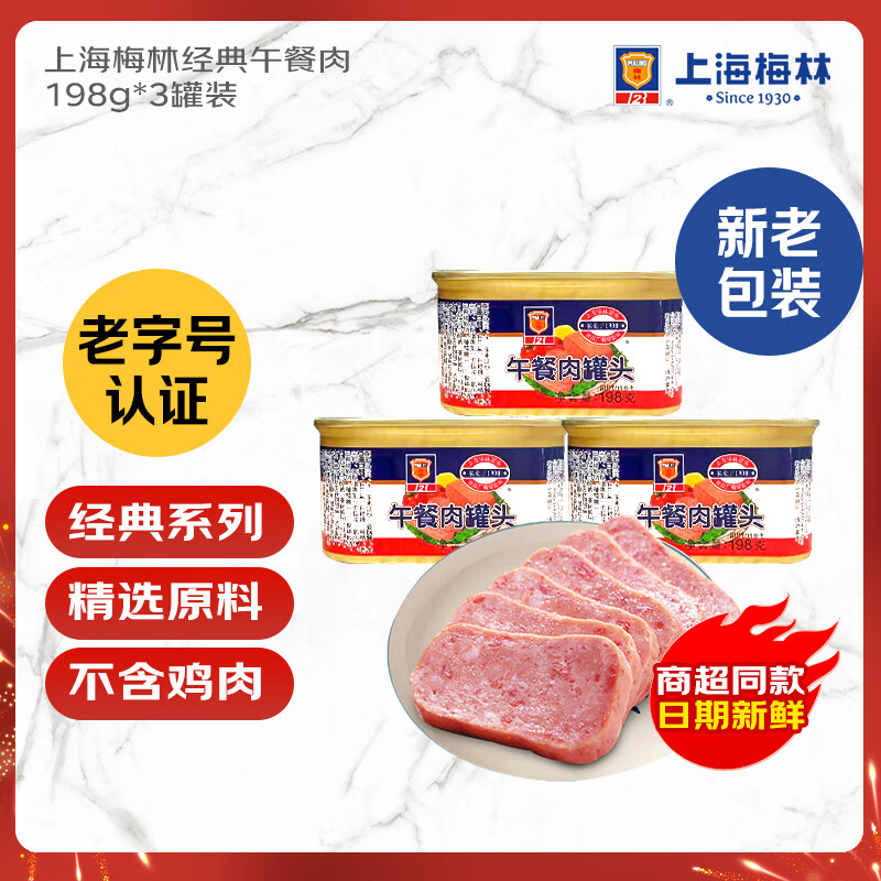 MALING上海梅林午餐肉罐头198g*3罐 不含鸡肉中华老字号火锅食材