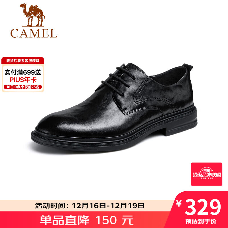 骆驼(CAMEL)德比轻便舒适抓花牛皮商务正装男士皮鞋 GE12235360 黑色 42