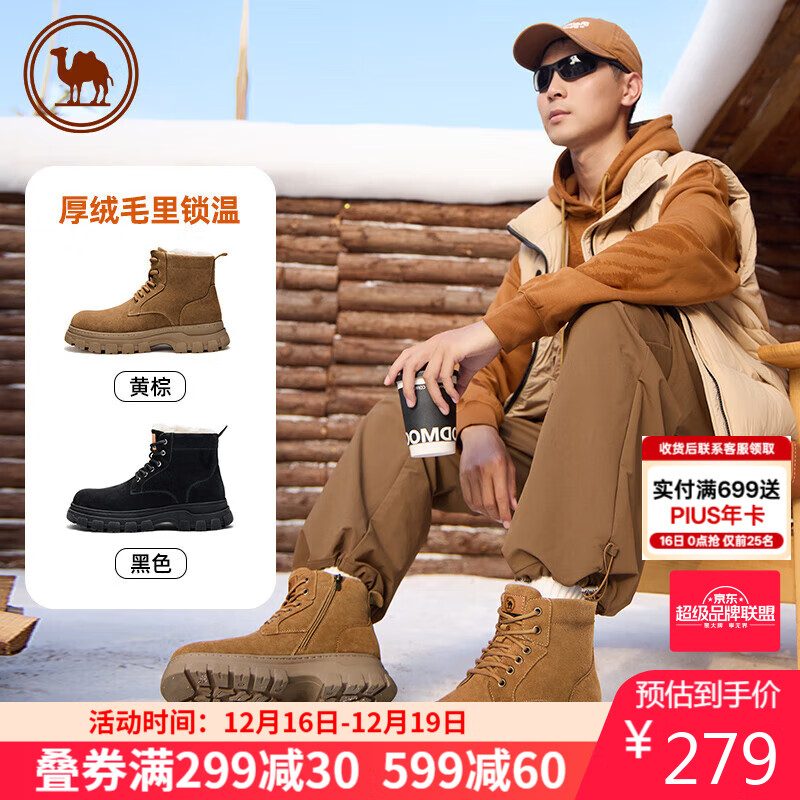 骆驼牌 雪地靴户外加厚加绒保暖棉鞋男靴 P15W201012 黄棕 42
