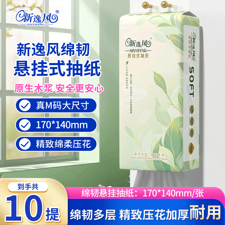 新逸风(XINYIFENG)悬挂式抽纸整箱批餐巾纸家用实惠装厕纸抽卫生餐巾纸面巾纸可擦手 【12000张整箱】5层1200张*10提