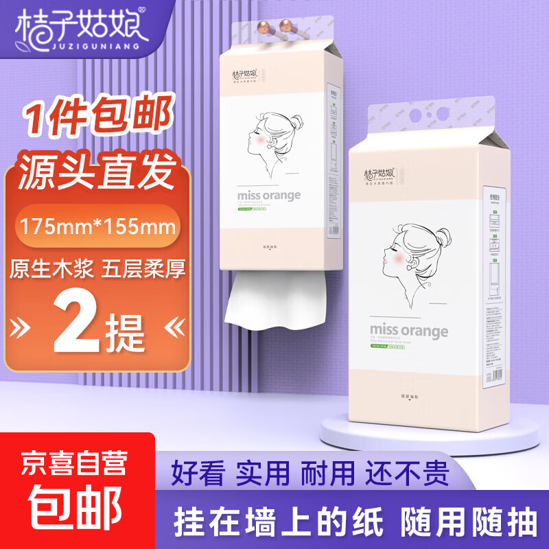 【优等品】桔子姑娘挂式纸巾1300张悬挂抽纸加厚厕所卫生纸批发 5层 1300张*2提 【挂抽实惠装】