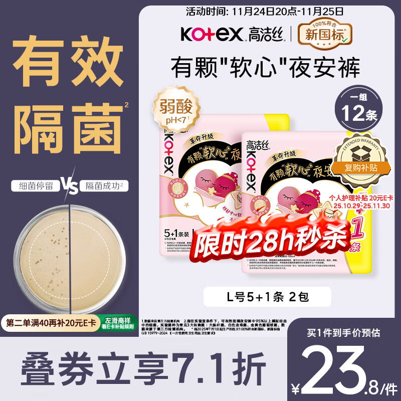 高洁丝【有效隔菌】软心夜安裤L号12条90-140斤裤型卫生巾安睡裤自营