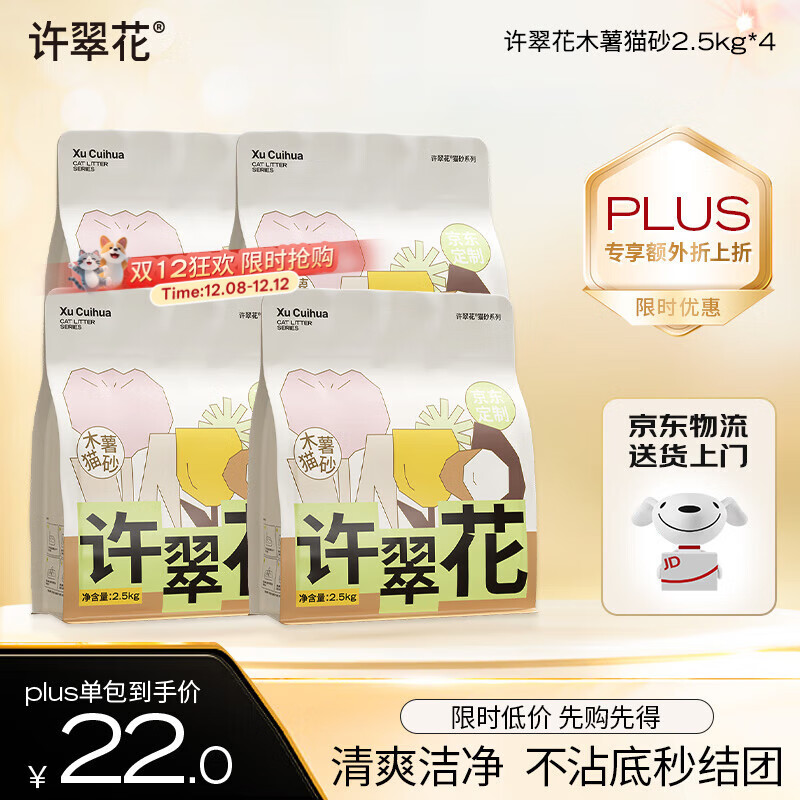 许翠花 经典升级纯植物猫砂2.5kg*4包木薯猫砂不粘底强吸水易结团
