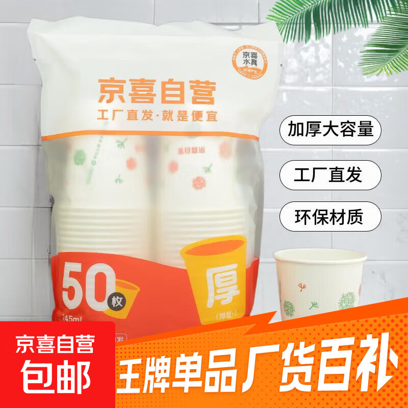 【央视认证】加厚一次性纸杯245ML大容量水杯超市家用杯子新产 纯白色 245ML50只